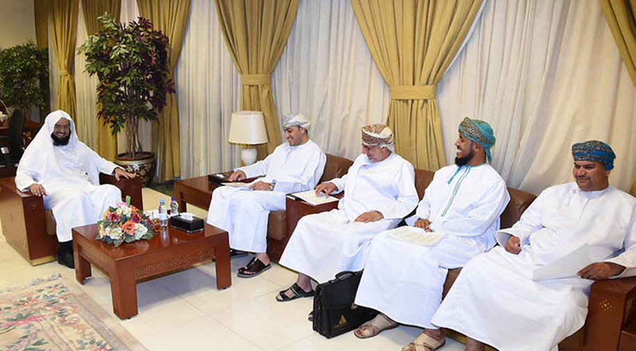 From their side, the Omani delegation, which heading by Mr. Salem Al-Rashdi, Plenipotentiary Minister of Omani Embassy to Saudi Arabia, has thanked Dr. Al-Mahmoud for his cordial and warmth welcome and hospitality. He, likewise, considered Al-Imam University as the key pillar for joint action between both parties. The Omani delegation was included Mr. Ahmad Al-Azary, Director of External Scholarships, and Mr. Hamad Al-Harthy, Director of Seeking-Services Administration, and Mr. Taleb Al-Makhzoumi, In-Charge officer of Scholarship Students at Gulf Cooperation Countries (GCC).