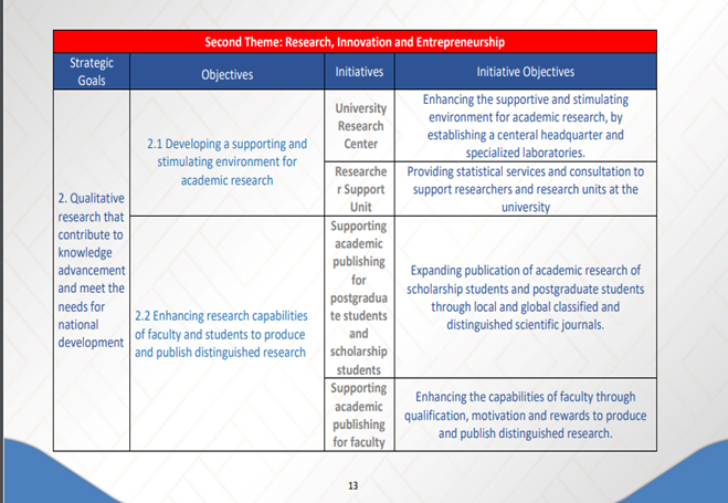 • Founding a new deanship replacing the current Assessment and Quality Unit dealing with development, quality and academic accreditation at all colleges and departments.
