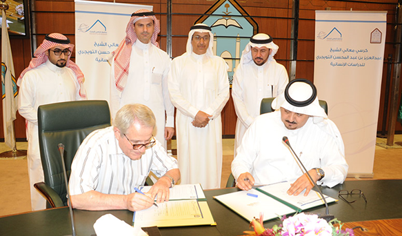 Dr. Fawzan bin Abdul-Rahman Al-Fawzan, Acting Rector of Al-Imam Muhammad Ibn Saud Islamic University, has patronized lastly a signature ceremony of “Collaboration Agreement” for operating centers of teaching Arabic Language between Deanship of Institutes Abroad Affairs and Educational Charity Fund.