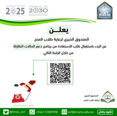 Emergency Support Program: It is a program concerned with contributing to the needs of scholarship students in emergency cases. To take advantage of the program, please visit the following link: Click here