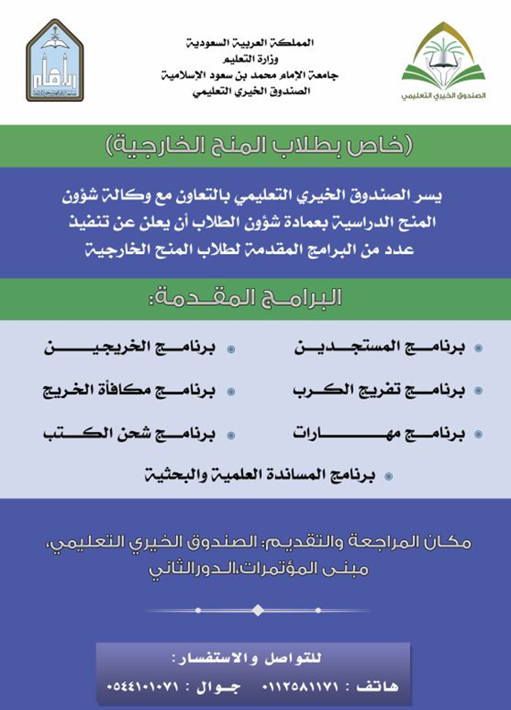 This came during his speech at the opening of the first scientific forum for external scholarship students, which was held yesterday under the patronage of the Minister of Higher Education, Dr. Then a speech by the Executive Director of the Fund, then a speech by the graduates, then a presentation of the experience of one of the scholarship graduates, then a poem by one of the scholarship students, after which a documentary film was shown. The rector of the university said that this forum has scientific, legal and religious dimensions that are not hidden from everyone, which is the realization of the message that our blessed country is working on under its wise leadership, headed by the Custodian of the Two Holy Mosques King Abdullah bin Abdulaziz and His Highness the Crown Prince, Prince Nayef bin Abdulaziz - may God protect them - and who spare no effort. To make every possible material and moral efforts in the service of the religion and in order to spread the principles of Islam over every land and under every sky.
