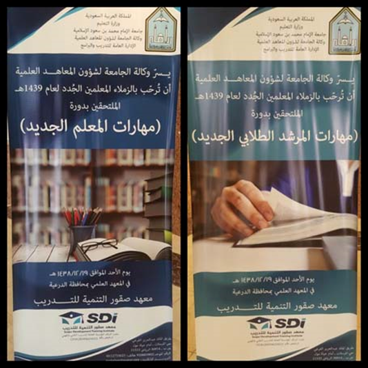 A number of training programs, including the program (New Teacher Skills) and the program (Skills of the New Student Advisor) were held at the headquarters of the Scientific Institute in Diriyah, and the program was attended by about (150) trainees. The program included many axes including the preparation of the quarterly plan, the formulation of behavioral goals, the skill application of teaching methods, patterns of classroom management, classroom problems and methods of treatment, characteristics of growth, human relations. The ethical code for the profession of guidance and guidance, dealing with study cases, methods of guidance and guidance.
