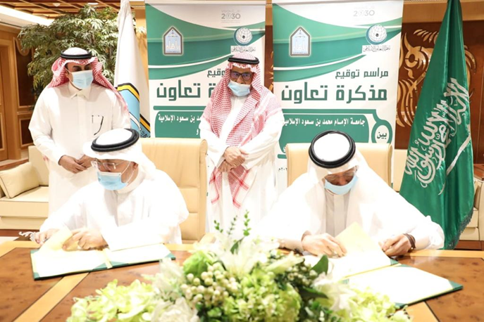 His Excellency the President of Imam Muhammad bin Saud Islamic University, Prof. Ahmed bin Salem Al-Amiri, signed in his office on Thursday, January 22, 1442 AH, a memorandum of cooperation with His Excellency the Secretary-General of the Organization of Islamic Cooperation, Dr. Yousef bin Ahmed Al-Uthaymeen; To benefit from the university's research, scientific and media cadres and expertise and to enhance joint cooperation between the two sides.