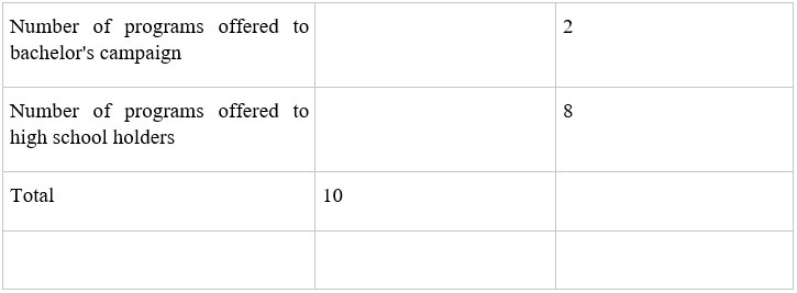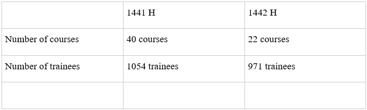 intellectual security, cybersecurity, quality, education and scientific research, as well as legal, administrative, technical, financial and other areas, and the duration of training courses varies from long training courses to eight weeks, and short training courses of a few hours or days. The College is also currently working on several specialized training programmes to meet the needs of the labour market, job requirements, and provide professional and professional certificates in coordination and cooperation with its donors.