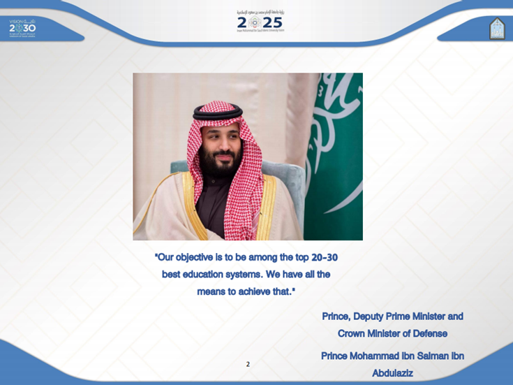 All components of the country play its role in achieving the kingdom's vision 2030 and its operational programs, and at the educational and research level universities come as a key element in achieving ambition, hence the University of Imam Mohammed bin Saud Islamic to play an active role in the pursuit of the vision of the Kingdom 2030 and to activate its executive programs and this concern was reflected in the decision of His Excellency the President of the University A.D. Ahmed bin Salem Al Ameri to establish the office of achieving the vision to take over the task of activating the role of the University in achieving the vision of Saudi Arabia and playing this concern on the decision of His Excellency the President of the University A.D. Ahmed bin Salem Al Ameri to establish the office of achieving vision to take over the task of activating the role of the University in achieving the role of the University in achieving the vision of Saudi Arabia and playing the role of the University in achieving the vision of Saudi Arabia. The office is the role of liaison officer between the university and the Office of Vision Investigation in the Ministry of Education to carry out the tasks achieved by the strategic objectives of the vision and activate its programs and initiatives and deepen the relationship between the university and its stakeholders.