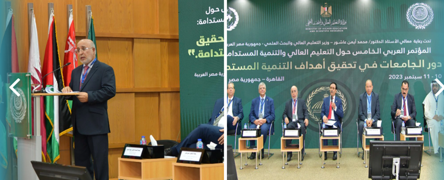His Excellency the President of Al-Imam Muhammad bin Saud Islamic University, Prof. Ahmed bin Salem Al-Ameri, participated in a working paper in the Fifth Arab Conference on Higher Education and Sustainable Development: The Role of Universities in Achieving Sustainable Development Goals, held from 10-11 September 2023 in Cairo, Egypt.
