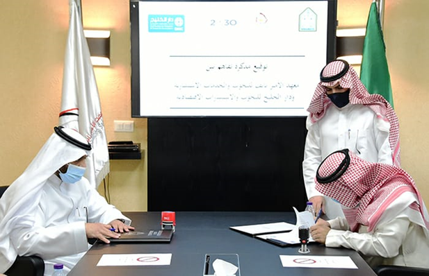 The memorandum was signed by the Institute, d. Riyadh bin Ahmed Al-Shuail, General Supervisor of Prince Nayef Institute for Research and Advisory Services at the university, and Dr. Tawfiq bin Abdulaziz Al-Suwailem, CEO of Dar Al Khaleej Company for Research and Economic Consultations.