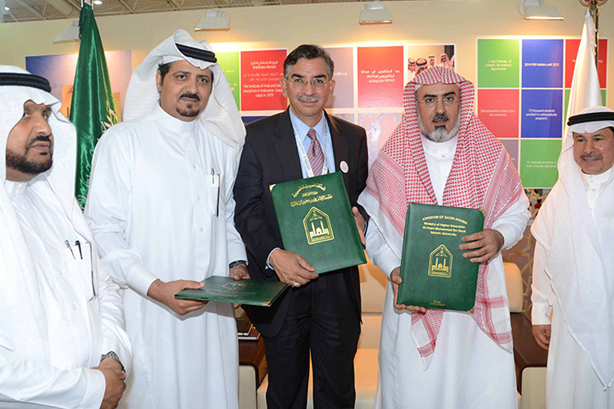 In the presence of H.E. Prof. Dr. Suliman Aba Al-Khail, Rector of Al-Imam Muhammad Ibn Saud Islamic University, and who doubles as Pro-Chancellor of International Islamic University in Islamabad "IIUI", Al-Imam Muhammad Ibn Saud Islamic University, representing by its Deanship of Information Technology and Deanship of Institutes Affairs Abroad, has signed a memorandum of understanding (MoU) and Collaboration Agreement with IIUI.