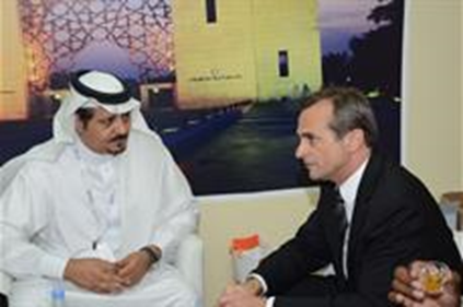 The booth of Imam Mohammad Ibn Saud Islamic University, as represented by the Vice-Presidency for Knowledge Exchange and International Communication, hosted a number of delegations and international representatives of a number of universities who have attended "the fourth Annual International Exhibition and Conference on Higher Education" during the period 6-9/6/1434 AH. They were received by the Vice-President for Knowledge Exchange and International Communication, Dr. Mohammad Al-Alam, the General Director of International Cooperation Administration, Mr. Ali Al-Rumaih, the Supervisor of the Vice-Presidency Office, Mr. Khaleel Al-Maliki, Advisor of Knowledge Exchange Program, Mr. Ahmad Alahmary as well as other members from the academic and administrative teams at the Vice-Presidency.