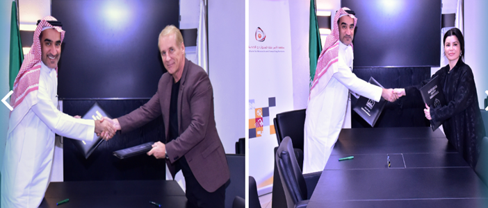The signing of the memorandum was attended by His Excellency Dr. Sulaiman bin Abdullah Al-Saghir, Dean of Prince Naif Institute for Research and Consulting Services, and from the second party: