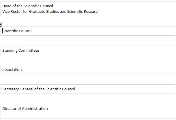 The General Secretariat of the Scientific Council is linked to the Vice Rector for Graduate Studies and Scientific Research.