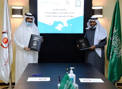 The memorandum was signed by Dr. Riyadh bin Ahmed Al-Shuail, General Supervisor of Prince Nayef Institute for Research and Consulting Services at Imam Muhammad bin Saud Islamic University, and Dr. Nasser bin Hammad Al Hammad, CEO of Jadeer Education, Training, Employment and Consulting Company.