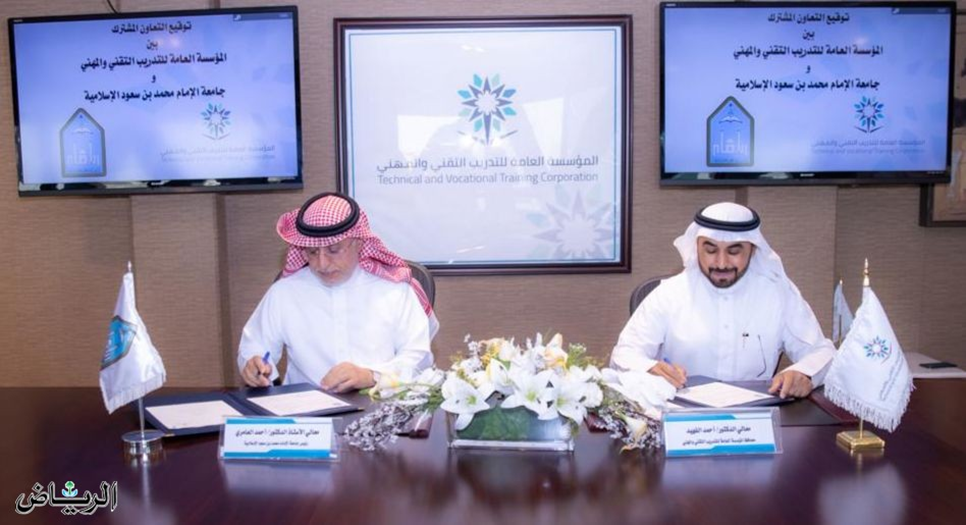The Technical and Vocational Training Corporation and Al-Imam Muhammad bin Saud University signed a memorandum of understanding to enhance cooperation in various fields. The directives of the wise leadership to cooperate with educational and training institutions and to support policies of integration between them and from the standpoint of cooperation and activating the role of education and training policies in the Kingdom.