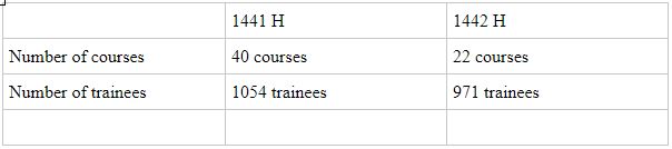 intellectual security, cybersecurity, quality, education and scientific research, as well as legal, administrative, technical, financial and other areas, and the duration of training courses varies from long training courses to eight weeks, and short training courses of a few hours or days. The College is also currently working on several specialized training programmes to meet the needs of the labour market, job requirements, and provide professional and professional certificates in coordination and cooperation with its donors.