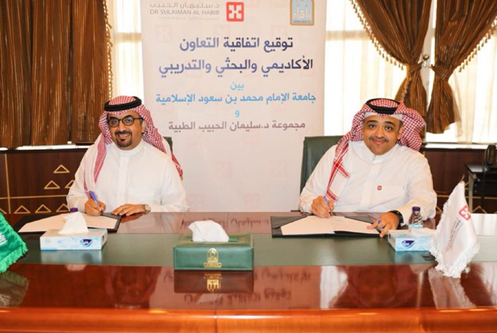 Dr. Sulaiman Al Habib Medical Group signed a joint cooperation agreement with Imam Muhammad bin Saud Islamic University, in the academic and research fields, and training and qualifying national cadres of university students in the group’s hospitals.