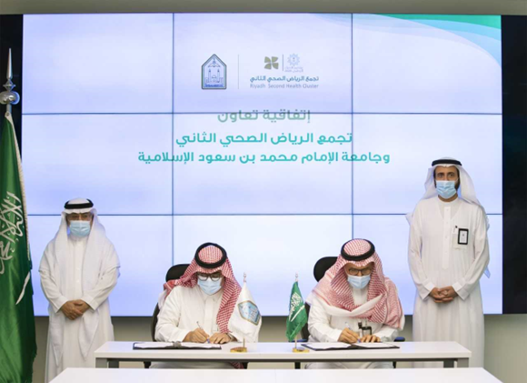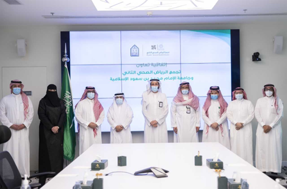 In the presence of His Excellency the Minister of Health, Dr. Tawfiq Al-Rabiah, and His Excellency the President of Imam Muhammad bin Saud Islamic University, Professor Dr. Ahmed bin Salem Al-Amiri, Imam Muhammad bin Saud Islamic University, represented by the College of Medicine, signed this Monday afternoon, 08/30/1442 AH, a memorandum of cooperation with the Second Health Cluster in the Central Region. To enhance efforts to develop educational, training and research programs and train male and female students in various disciplines to achieve development requirements and build scientific and professional cadres in the Kingdom.