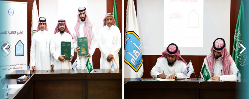 Al-Imam Muhammad bin Saud Islamic University, represented by the Deanship of Student Affairs, signed a memorandum of understanding with Reassurance Medical Center, and the agreement was signed by the Dean of Student Affairs, Dr. Ahmed bin Saad Al-Ahmad.