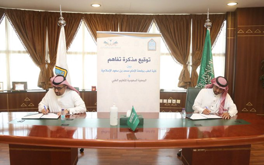Faculty of medicine signed a memorandum of understanding with (the Saudi Society for Medical Education); To provide a series of developmental programs in medical education, in order to achieve the principle of integration, cooperation and exchange of experiences between the two sides.
