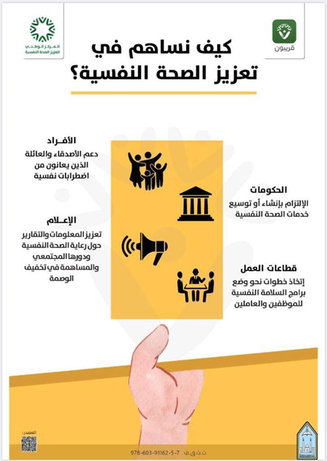 There is no evidence of the government of the Kingdom of Saudi Arabia’s interest in mental health from the presence of one of the programs of the Saudi Vision 2030, which is to strengthen the Saudi personality; Including maintaining mental health and social fabric, enhancing national awareness, combating extremism and terrorism, and building an attractive environment that contributes to the quality of life on the land of our dear homeland.