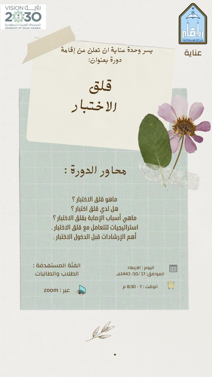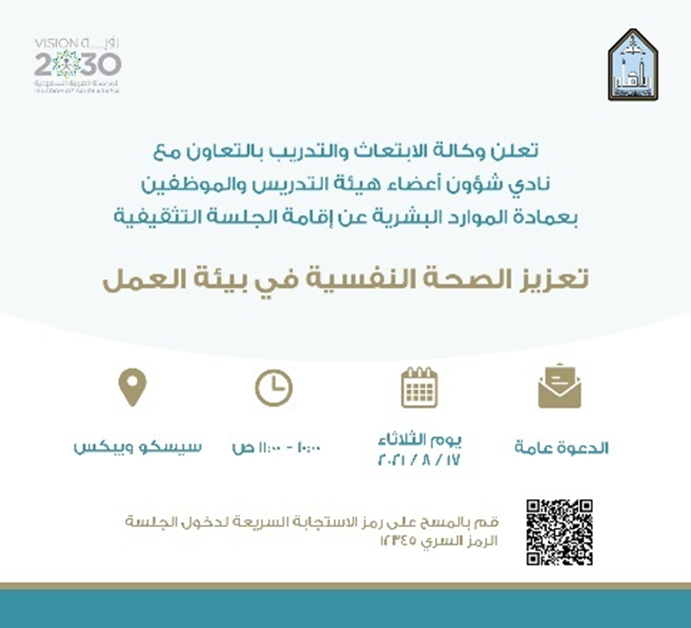 Highlighting the importance of the student's mental health and the role of Saudi Vision 2030 programs in promoting them through theoretical and applied scientific studies and research.
