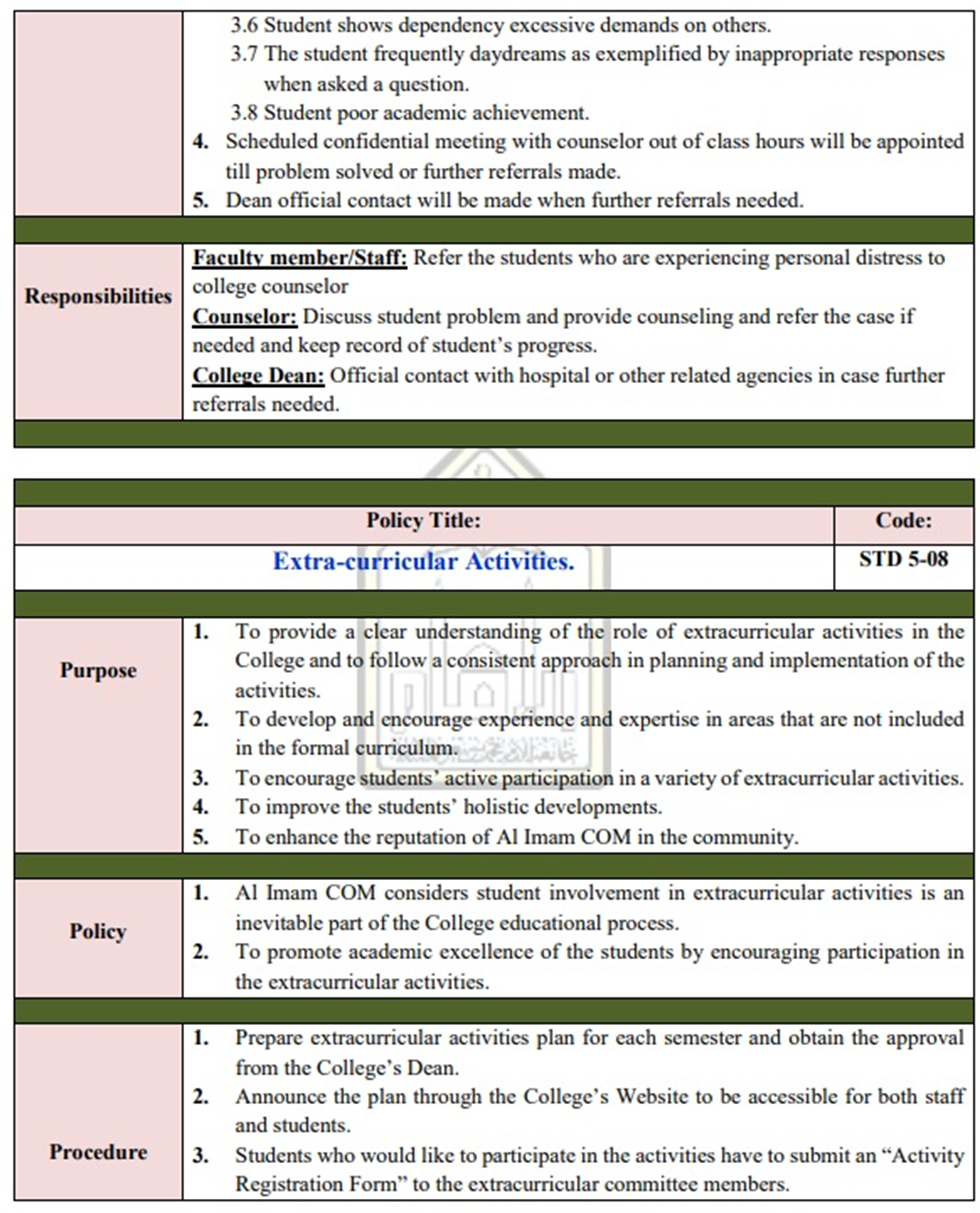 This policy and procedure apply to academic guidance committee, academic advisors, psychiatry department and course organizers