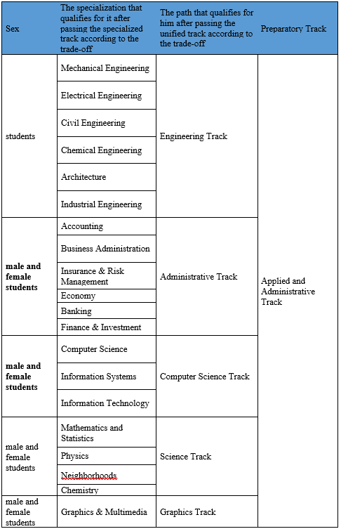 Admission to the path of health sciences, the applied and administrative path is limited to high school graduates. (Natural Sciences Path), or graduates of the University's scientific institutes after passing the tracks Qualified preparatory.