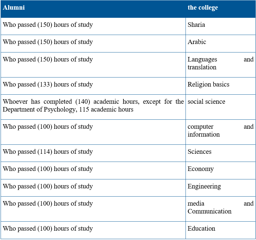 The minimum hours of the academic schedule is (8) hours, and it is forbidden to withdraw from the courses below them.