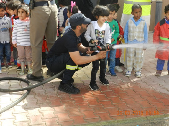 Welcome there by Mrs. Munirah bent Al-Abbassi, General Supervisor of Imam Kindergarten and Nursery Preschool, the safety delegations, in tandem with Civil Defense officers, were simply introduced the kids with the tasks and duties of civil defense officers. They also enlightened the children about the tools used in firefighting, and how they use in dangerous time at home.