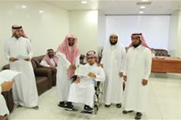 His Excellency the Rector of Imam Muhammad Ibn Saud Islamic University, a member of the Council of Senior Scholars, Sheikh Prof. Dr. Sulaiman bin Abdullah Aba Al-Khail, received in his office on Tuesday morning 15/8/1439H, Dean of Student Affairs, Dr. Khalid Al-Abdan, employees of people with special needs, and beneficiaries.