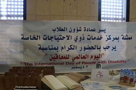 Based on the role of the Deanship of Student Affairs - Center for Services for People with Special Needs to carry out the work entrusted to it and to achieve its objectives, the Center for Services for People with Special Needs participated and activated the International Day of Disability on 3/12/2014.