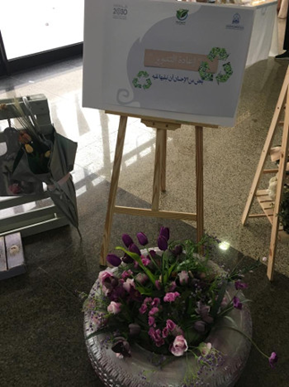 The Environment Week event organized by the Vice Deanship of Student Affairs for Female Students' Affairs, in cooperation with the branch of the Ministry of Environment, Water and Agriculture in Riyadh region, included leaflets and awareness leaflets, paper educational leaflets, a board and environmental artworks, such as the impact of the environment on physical and psychological health, methods of consumption and the safe economy of the environment, which in turn contribute to raising the level of responsibility of students towards the environment, as well as a visual presentation entitled "We plant to live" that included the definition of plants and the causes of their death, agriculture and reproduction, seeds and fertilizers, as well as the method of irrigation Beneficial and harmful plants and insects.